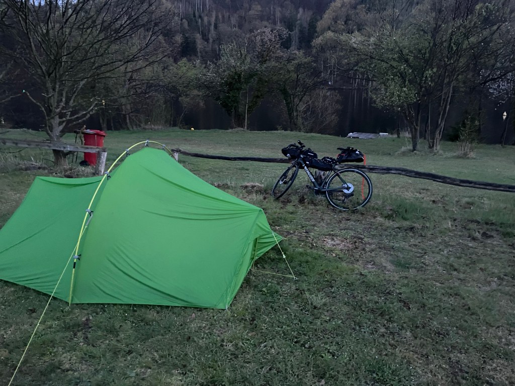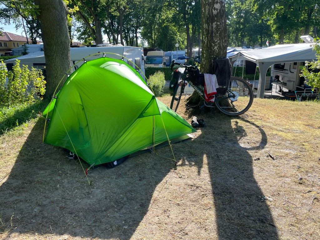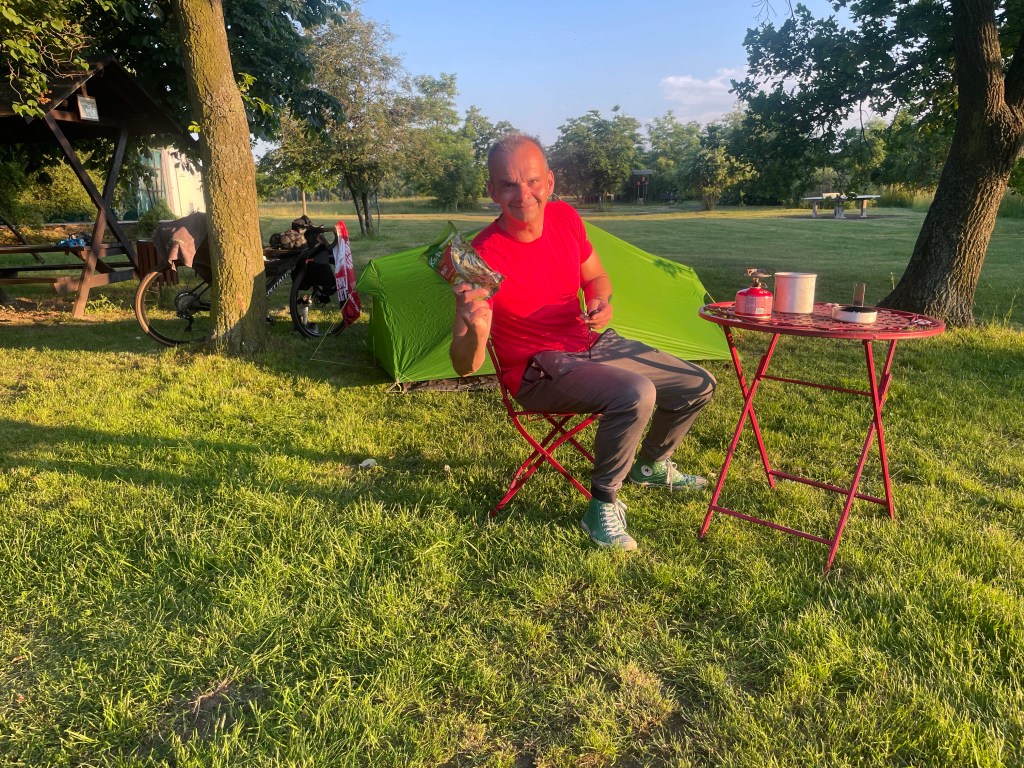Erster Stopp in Riesa auf einem kleinen Campingplatz. Traditionell gibts am ersten Tag lecker Fertignudel 🥳 Die ersten 60 km sind im Sack!