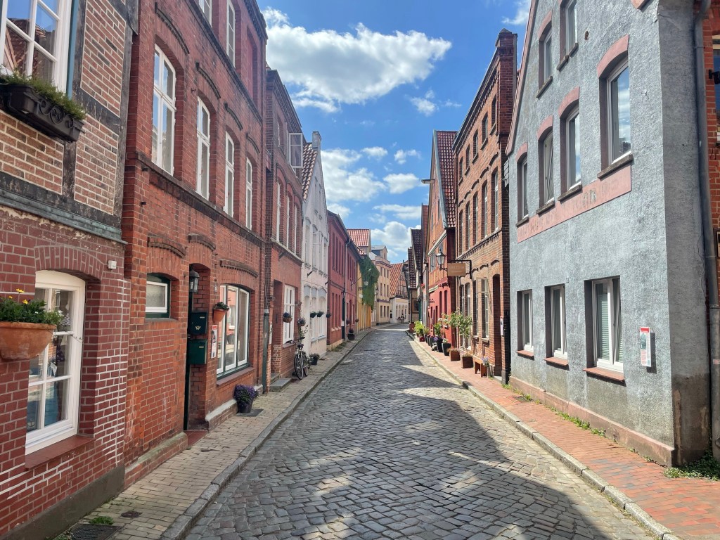 Es sind 13 Grad und der Wind bläst von vorn. Fühlt sich dadurch noch kälter an. Aber auf gehst.Langsam wird es wärmer Lauenburg gefällt mir. Ist eine Perle Kleine gemütliche Gassen Die Elbe ca. 40 km vor Hamburg. Echt breit. Ich schätze 300 Meter Geschafft
