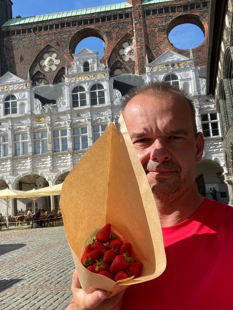 Meine gute Sonnenbrille hat es gestern entschärft( bin selbst drüber gefahren😳😱) . Da muss heute ne neue her. Sonst macht das wenig Spaß (vor allem Augenschutz wegen Insekten etc.) Der Weg nach LübeckAuf zum Marzipan 😍Soviel kann man gar nicht kosten Holstentor Sommer und Erdbeeren 🍓 lecker