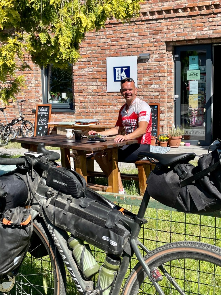 Pünktlich 13 Uhr geht’s los. Ein großes Dankeschön an meine Kolleginnen geht raus…da Sie mir immer den Rücken freihalten. Nachdem in der letzen Zeit viel passiert ist muss ich mir mal wieder allein den Kopf freifahren. Vom heutigen Mittwoch bis zum Samstag habe ich die Tour nach Uckermünde geplant. Annett wird mich am Samstag einsammeln. Bevor es aber nach Hause geht, wollen wir gemeinsam am Sonntag nach Usedom. Entdecken, staunen, chillen und sich körperlich auspowern. Ich liebe meine Radtouren ganz allein. Mein Tempo, meine Regeln, meine Zeit.🔥Wegzehrung im wahrsten Sinne. Die kleinen Dinger schmecken schon. 🍎Ich lass jede festliche Gala für eine zünftige Bordsteingala sausen. Hoyerswerda. Nach 75 km und 700 hm habe ich keine Lust mehr für heute. Ich bleibe heute Nacht in dieser Weltmetropole. An so einem Zeitungskiosk habe ich mir in meiner Kindheit oft die Frösi oder noch lieber die Atze gekauft. Kennt das noch jemand? Eigentlich müssten diese Kioske denkmalgeschützt werden. Gleich früh gegen 7:30 Uhr bin ich aus Hoyerswerda gestartet. Nach ca. 60km die erste Verpflegungsstation. Ich liebe diese kleinen Läden, in den man noch bedient wird und man nicht mit Karte zahlen kann. Diese Natur ist großartig. Irgendwie strahlen die Tiere ein Friedlichkeit aus. Wir sollten in der Stadt auch mehr Tiere haben. Tiere und Natur erden uns. Was würde der TÜV heutzutage sagen 🙄😱Weltstadt Eisenhüttenstadt. Nach 120 km erreicht. Aber es geht heute noch weiter. Habe Bock Nach über 160 km habe ich Frankfurt Oder erreicht. Der Besuch beim örtlichen Griechen ist mittlerweile Tradition 🤭7:30 Uhr geht’s weiter. Raus aus Frankfurt Oder und rein in die Natur Man fragt sich ja immer, wo dieser ominöse Hund begraben liegt. Ich habe den Ort gefunden. 12 km hinter Frankfurt Oder.Mein Endgegner . Wenn man noch keine Kopfschmerzen hat, hier bekommt man welche. Grausam diese Rüttelei. Passt für heute Herrlich. Diese kleinen Pausen. Nur ne Banane und ein Schluck Wasser. Die einfachen Dinge. Und dann diese NaturNach 150 km erreiche in Gratz. In dieser kleinen Pension penne ich heute. Ganz nett hier . Nur Barzahlung 🙄Gleich früh 7 Uhr geht’s weiter. Noch ist es trocken. Es zieht sich immer mehr zu . Die Natur ist so zauberhaft hier Wie ausgestorben hier . Keine Sau da Warum plane ich mir solche sandigen Wege ? 🤷🏼♂️. Da kann ich nur schieben Immer positiv denken . Meine Welt. Bordstein Gala in Löcknitz . Es regnet sich schon ein . Kurz vor Uckermünde gibt es einen märchenhaften Radweg durch den Wald 🌳 Angekommen