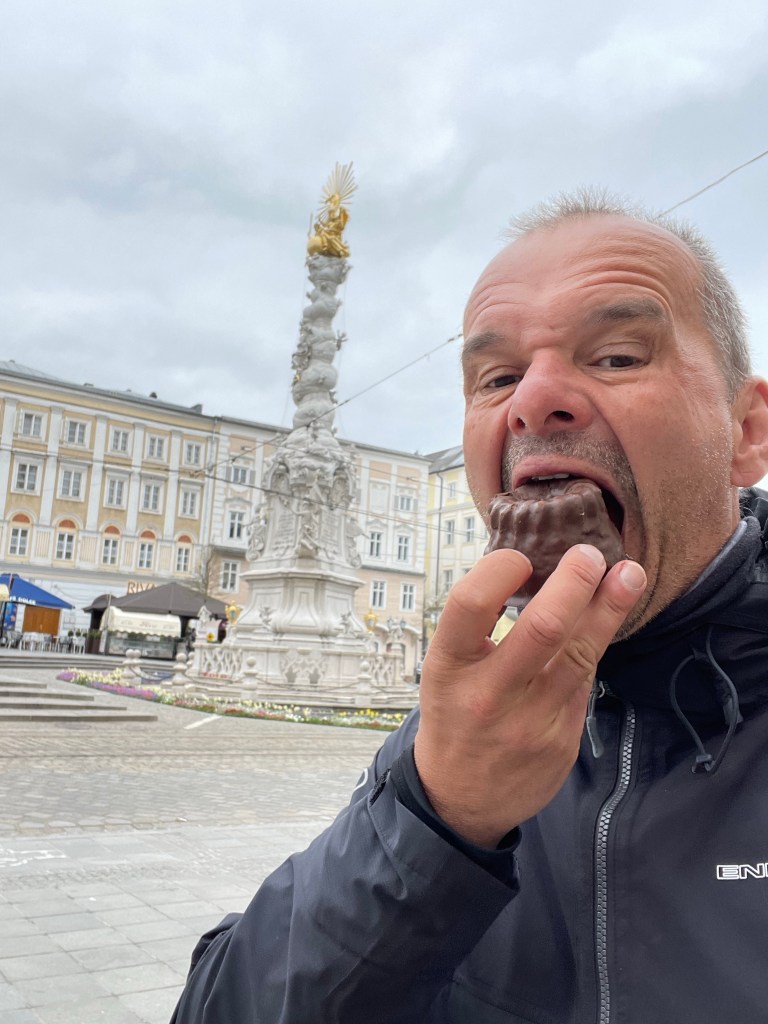Heute früh 7:30 an der südlichsten Spitze von Tschechien . Die Wege sind fast unbefahrbar. Es erinnert mich sehr an den Stone Man . Naja immerhin habe ich ca. 3 h für 12 km gebraucht. 🙄Wiedermal Schieben . Ganz leichter Nieselregen bei 2 Grad 🥶13:30 Uhr bin endlich in Linz. Allein sein, Natur und Leute entdecken und sehr viel Essen, sind wesentliche Gründe für eine Radtour. Finde ich zumindest.