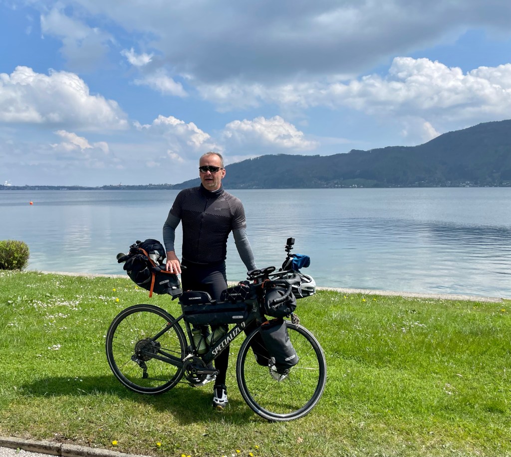 Tolle Begegnung in schwanenstadt, Franz ist ein uriger Typ. Er ist 74 und hat die Welt mit dem Rad bereist, ohne Internet und technischen Zeug. Wir haben uns mitten auf einer Kreuzung getroffen und uns auch dort unterhalten. Franz wohnt in einer Hütte im Wald ohne Strom und fliesend Wasser. Cooler Typ, der Franz. Am Attersee . Ca. 60 km noch bis Salzburg Der Radweg führt direkt am Atter See vorbei . Nach 93 km ist Salzburg erreicht Morgen ist ein Regenerationstag angesagt. Ich werde Salzburg unsicher machen und viele viele Mozartkugeln schmausen . Meine Reise, meine Regeln, Für die 2 Nächte in Salzburg, habe ich mir ein Hotelzimmer genommen.Heute war nicht viel los. Eigentlich nur Stadtbummel, an der Salzach gelegen und Mozart gehört .