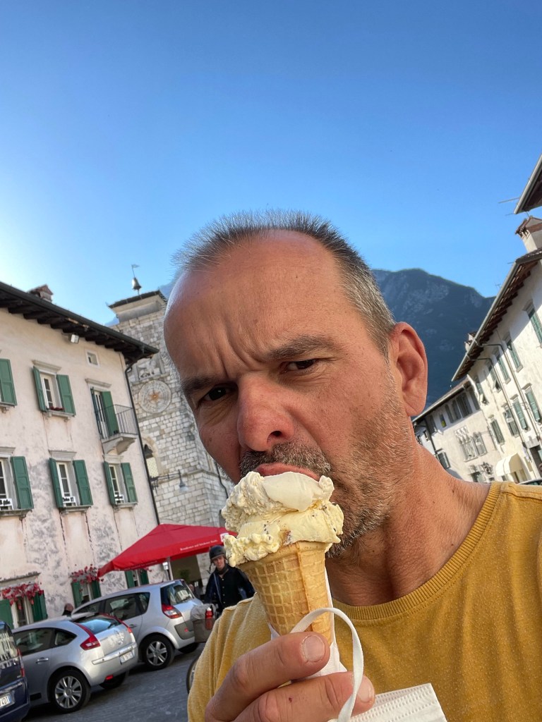 Meinem wissenschaftlichen Experiment zufolge, wird einem nach 7 Kugeln schlecht. Aber bis dahin , einfach lecker! Tolles Gefühl Eine Gewitterfront zieht auf. Nach langer Suche im Regen nach einer Pension werde ich endlich nach 106 km im Dorf Gastein fündig. Völlig durchnässt und durchgefroren freue ich nun über ein Dach übern Kopf. Bad Gastein in 1000 Metern Höhe. Es ist kalt und die Wolken regnen sich stetig ab. Ein bissel Schnee ist noch auf 1300 Metern. Die 8 km lange Abfahrt in die Sonne ☀️. Auf nach Kärnten. Nach 100 km heute in Villach angekommen. Es ist deutlich wärmer und schon kommt Urlaubsstimmung bei mir auf. Ab morgen sollen die Etappen kleiner werden. Ich möchte den Weg genießen. Geschafft, mit dem Rad in Italien. Geiles Gefühl ! Ab jetzt ist Urlaub