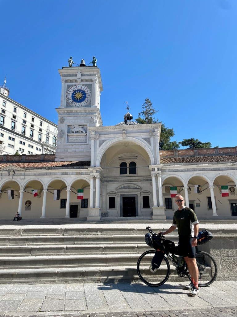 Der Alpe Adria Radweg verläuft eine Zeit lang auf einer alten Eisenbahn Trasse. Die Bahnhöfe sind entweder verfallen oder dienen als Rastplatz. 🙄Hier fuhr mal ein Zug entlang, Diese Farbe, unglaublich schön Venzone, nach 93 km mein heutiges Ziel. Meine 5m2 für heute Nacht. Ich habe wirklich noch nie so gutes Eis gegessen! Da ich mich schon 7 Uhr auf den Weg gemacht habe, bin ich schon 11 Uhr in Udine. Die Stadt ist schön, aber nicht für Radfahrer gemacht, Nach über 1000km, nun bei schönsten Wetter die Adria erreicht. Bin stolz wie Bolle 😃Grado mein heutiges Ziel ist nach 105 km erreicht. Hier endet nun der Alpe Adria Radweg, Heute gibt es nicht viel zu berichten. Das Tages Highlight bestand daraus, auf 75 km italienischer Bundesstraße nicht zu sterben. Ich schlafe heute in Bibione, einer kleinen touristischen Stadt ca. 80 km vor Venedig. In der Saison muss hier die Hölle sein. Heute fahre ich vom Meer weg, in Richtung Treviso. Dabei fahre ich erstmal ohne genaues Ziel los. Es soll ein entspannter italienischer Sonntag werden. Zum Glück haben die kleinen Espresso Bars überall auf. 😃Heute ging es solche Landstraßen entlang , immer in Richtung Venedig. Mit ordentlichen Rückenwind, kam ich schnell voran, so dass ich schon 15 Uhr in San Dona de Piave ankam. Das war auch gut, denn ein Gewitter zog auf. Heute waren es 70 km. Ich bin ja für meine wissenschaftliche Studien bekannt🙄. Eine weitere wichtige Frage, für die Ich mich opfere, ist wie lange man Socken hintereinander ganztägig anziehen kann, ohne diese zu waschen. Faktoren wie Dreck (Kruste), Gestank und Stoffabnutzung werden jeden Tag akribisch geprüft. Nach fast 2 Wochen täglichen Gebrauch, ist jedoch eine gewissen olfaktorische Grenze erreicht. Das Experiment muss jedoch bis Donnerstag weiter geführt werden. Das wird nicht leicht 🤪Der Marktplatz von San Dona de Piave erinnert mich irgendwie an die Filme -Zurück in die Zukunft. Ihr wisst schon , die Uhr 😃Auf diese Grande Dame der Hotellerie hatte ich heute Lust. So ein altes italienisches Gasthaus wo es übertrieben nach billiger Seife riecht und Sophia Loren in schwarz/weiß an der Wand hängt. Das ist auch Italien 🇮🇹 Guten Morgen, ein erster Espresso in einem dieser herrlichen verschlafenen Örtchen am Rande des Weges. In dieses Bars treffen sich schon morgens relativ viele Menschen. Es wird sich schon morgens lautstark ungehalten. Heute ist Müßiggang Terviso , mein heutiges Ziel. Schon nach 35 km erreicht. Ich bleib in der Stadt und genieß Italien. Eine Pizza wie sie sein soll! In schwarz weiß wirkt es eben noch cooler 😎Auch das ist Italien Kuppelbau können die Italiener schon seit der Renaissance. Die Cattedrale di Treviso ist ein gutes Beispiel für diese Baukunst. Ein Ciabattona. Ist der Hammer. Darauf Parma Schinken und ne Fanta dazu. Die perfekte Bordsteingala! Dieses Schauspiel findet man in jeder italienischen Stadt. Bis 18 Uhr ist hier nix los. Dann Zack, innerhalb einer halben Stunde sind die kleinen Bars voll. Dabei gibt es nur Häppchen und klassische Snacks zu essen. Bin in einer Künstler Pension gelandet. Zum heiligen Thomas 🙄. Na, wenn ich da nicht gut schlafe. Heute wird der letzte richtige Radtour Tag . Auf dem Weg zum Campingplatz, wo ich am Donnerstag auf Annett treffe, stehen tatsächlich Flamingos direkt am Radweg rum. So mega. Keine 20 Minuten später, diese Wand. Krass . Gerade noch Flamingos in freier Natur und jetzt das . Verrückt 🤪Die Rad Reise ist nun leider vorbei . Das Meer und die Sonne sind fabelhaft.