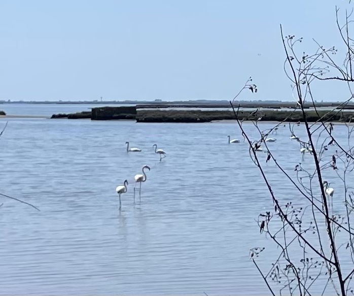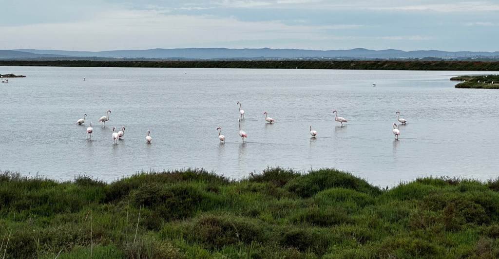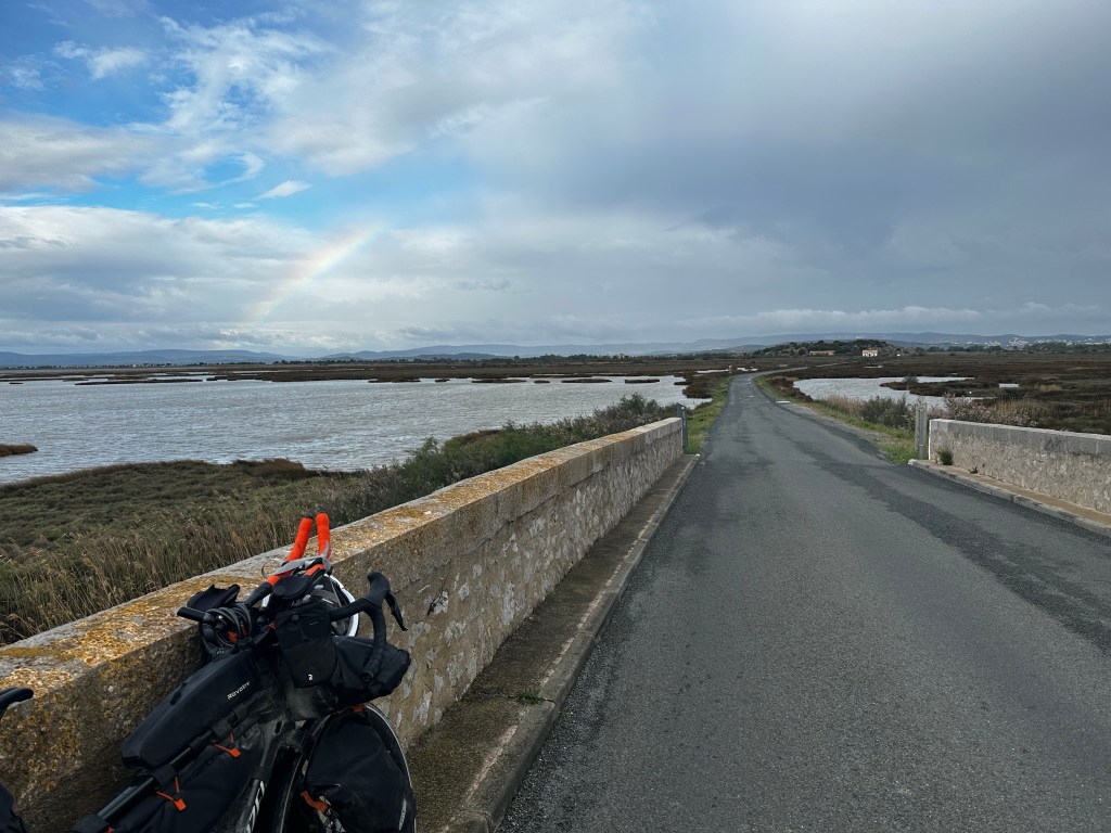 Pon Saint BenezetAuf dem Weg ans Meer zwischen Avignon und Terrascon. Diese Bars in den kleinen Dörfern haben ihren besonderen Charme. Besonders gut gehen hier , Rubbellose, Espresso und Pastis. Auf dem in und auch durch die Camargue führen einige staubige Wege Die Pferde hier sind alle nicht mehr frei. Aber großzügig eingefriedet. Schön sind sie allemal Auch die Flamingos haben auf mich gewartet. Die sind aber frei 🥳. Nach 110 km mit gehörig Gegenwind habe ich die französische Mittelmeerküste erreicht. Ab jetzt gehts eigentlich nur in der Nähe der Meeres entlang, Noch ca. 500 km Da dachte ich wieder ich bin clever und buche von privat was. Naja für eine Nacht gehts . 67 € für diese Bumsbude ist auch nicht wenig. Ist mitten in einem normalem hohen Plattenbau. Und stinkt . Mein Tag begann relativ unromantisch gegen 7 Uhr in einem Hinterhof bei einem Bäcker. Viele Franzosen wohnen in solchen einfachen und manchmal schon durchaus heruntergekommenen Mietwohnungen. Das durchschnittliche Gehalt ist weniger als in Deutschland. Die Preise sind aber ähnlich. Kaum raus aus der Stadt, standen wieder unzählige Flamingos direkt an der Straße.