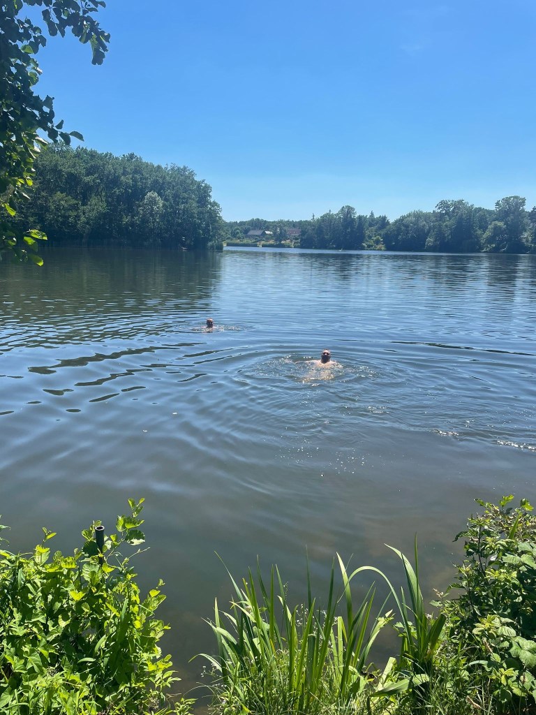 Bauch ist eingezogen 😅. An einem schönen See kurz vor chambery. Meinem heutigen Ziel.