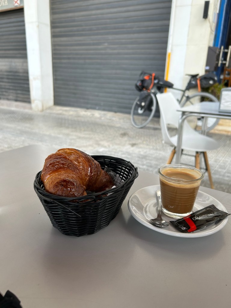Hoffentlich wird mein Rad auch auf dem Flug mitgenommen….und kommt heile an. Und ich finde den Flughafen BER gar nicht so schlimm. Klappt alles super 👍 So in etwa soll die Route verlaufen.Die Wetter Vorhersage ist großartig. Eigentlich nur Sonne und ca. 20 Grad. Am 27.04.24 flieg ich von Málaga wieder nach Berlin. In Barcelona ist auch nach 24 Uhr noch richtig viel los. So, nach der ersten Nacht gehen die Vorbereitungen für den morgigen Tag los. Das Rad scheint echt heil hier angekommen zu sein🥳. Heute werde ich noch Barcelona unsicher machen und erst morgen mit der Tour starten.Ihr macht euch keine Vorstellung wieviel Menschen hier unterwegs sind, unglaubliche Massen. Wird Zeit, dass ich morgen in die Pampa fahre. Gute Reporter wissen, was die Leserschaft interessiert 🤔 Am Abend war ich noch in einer Kunstgalerie. Dieses Meisterwerk hat eine faszinierende Wirkung. Ich liebe ja Skulpturen. Diese beeindruckende Skulptur ist ca. 2,30 m hoch und noch verziert mit feinen Schnitzereien. Heute Sonntag der 14.04.24 sollte es eigentlich gleich früh losgehen. Leider streikte meine elektronische Schaltung. Deshalb musste ich alles wieder auseinander basteln und laden. 13 Uhr bin ich dann gestartet und gegen 15 Uhr war ich endlich raus aus Barcelona. Jetzt geht’s los. Die Ruhe trügt. Weiter oben in den Bergen war der Verkehr sehr dicht. Auch gab es eigentlich keinen Seitenstreifen. Das muss man als Radfahrer mögen. Die Aussichten waren gut. Nur der Verkehr mit wenig Platz war Stress pur. Aber grundsätzlich fahren die Spanier sehr ausgeglichen. Da habe ich mal ne Lücke für das Bild genutzt. Nach fast 60 km erreiche ich Sitges. Hier bleibe ich für die Nacht. Ich lass es für heute gut sein.Noch ein paar Ohrringe für Heli geshoppt. 🥰Nett hier. In dieser Pension habe ich gepennt. Ein Cortado. Sehr lecker. Als noch alles harmlos war. Heute wollte ich ja Kilometertechnisch bissel angreifen..,Der offizielle Weg, ihr seht Rechts einen Wegweiser. Schauen wir mal um die Ecke…Da ist er, der offizielle Radweg 🤔… oben ging’s dann direkt an den befahrenen Bahngleisen weiter. Auf Schotter ca. 2 m neben den Schienen…. Ohne Zaun natürlich Als ich dem Tod an den Bahngleisen entkommen bin, wartete hier seine nächste Chance. Wer bitte fährt sowas mit dem Rad. Auch mit dem Mountainbike mehr als schwierig. Ca. 5 km ging diese Passage und kostete mich 2 Stunden. Dann wurde es eng 😳Der Gegenwind fordert mich. Hier habe ich eine Tüte Popcorn in Weltrekord Zeit weggeatmet.Dann ging’s relativ unromantisch weiter. Nach knapp 100 km bin ich für heute am Ziel. Nur noch Essen im Bett- und die Planung für Morgen machen.Nach einer Nacht fast ohne Schlaf, (dieser Sturm war so laut !!! , echt heftig) ging es wieder mal in die Berge.Auf einer dieser Strecken muss es dann passiert sein.🤔 Eine Tasche an der Vordergabel hat sich gelöst und ist verloren gegangen. Ich bin dann ca. 8 km nochmal zurück . 🚴 Aber leider blieb sie verschwunden. Inhalt : Werkzeug, Schläuche, eine teure Fahrradbrille, mein Schloss und etwas Essen.Der Gegenwind verdirbt hier einiges . Echt krass heute.Abends in Castello del la Plana eingefahren. Langsam komme ich rein ins Bike Game. Heute waren es schon 140 km. Morgen könnte ich Valencia erreichen mit ca. 90 km ist die Stadt noch eine Tagesreise entfernt. Mal schauen ob alles klappt. Ich muss mir morgen erstmal ne neue Brille besorgen. Die ist nämlich nicht nur gegen das Blenden gut …sondern auch fürs Aussehen optimal.😇 Und sie schützt vor Staub und Insekten. Deshalb muss morgen eine neue Brille her .So liebe ich es . Es geht nach Valencia. Ich folge dem Eurovelo 8 durch die Orangenhaine. Klar habe ich eine Orange gegessen. Mega 😋 lecker Am Nachmittag war es dann soweit. Valencia 😃 Ciutat de les Arts i les CiènciesViel los hier. Aber schon ein schöner Sommer VibeUnd jetzt das wichtigste😎 Ich hatte die Wahl, 170€ oder eben 7 € . Empanadas . Sehr lecker. Heute mein Abendessen. 😋 Morgen geht’s in die Berge. Ich erreiche hoffentlich den höchsten Punkt meiner Tour. Viel wird vom Wind und den Wegen abhängig sein. Auf geht’s . Ein neuer Tag und neues Glück. Es ist heiß 🔥 und es weht kein Lüftchen. Gerade richtig um sich Gedanken zu machen. Heute habe ich ein paar mal mit meinen Arbeitskolleginnen telefoniert. Alles in allen bin ich sehr dankbar, dass mich alle so unterstützen. Auch mein Geschäftspartner meine Familie und meine Freunde erlauben mir diese Art von Freiheit. Ich glaube der wahre Wert des Lebens, sind die menschlichen Beziehungen.Das tat gut 😌 Ein weitere Gedanke den ich bei der Fahrt so hatte war, wie die ganzen Motivationssprüche so funktionieren. Z.b. Jammere nicht, sondern such nach Lösungen usw. Grundsätzlich bin ich ja auch ein Freund von diesem positiven Werten und Grundhaltungen und dass halt viel im Kopf entschieden wird. Doch manchmal kommen mir die sanften Worte zu kurz! Ich glaube, man sollte schon Schwerpunkte in seinem Leben setzen, auch sollte man seine Ziele fokussiert mit voller Verantwortung angehen. Aber trotzdem sollten wir uns selbst und andern, auch milde und liebevolle Worte zugestehen. Das machen wir viel zu selten. Diese Straßen ziehen sich. Und sind für fette Fahrradfahrer wie mich eine echte Quälerei.Das Sierra de Callosa, so heißt diese Gebirgskette, zieht mir ganz schön den Stecker.Nach 130 km und etlichen Höhenmeter ziehe ich mich in meine Suite zurück , morgen soll’s nach Alicante gehen. Ans Meer 😃Früh 7:30 Uhr ging’s los . In dem Motel hatte ich die Suite mit dem Kopfkissen aus Stein 😳Schöne Wege durchs Hinterland Leider wurde es immer kühler und es fing mit regnen an. Hoch oben in den Bergen war es gruselig und feucht kalt 🥶Gravel Strecke 14 Uhr erreiche ich Alicante Abends nach 135 km bin ich Torrevieja angekommen. Jetzt eine Paella 🥘 und dann ins Nest. Heute bin ich erst spät los. Es geht wieder ins bergige. Die Stimmung ist melancholisch. Auch