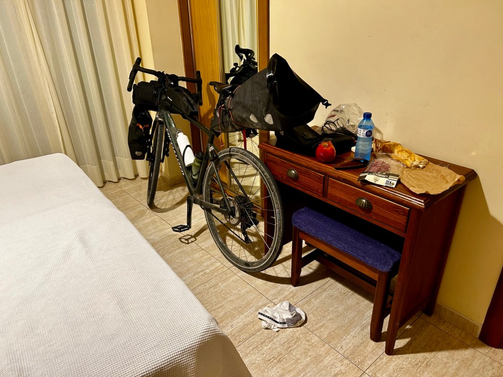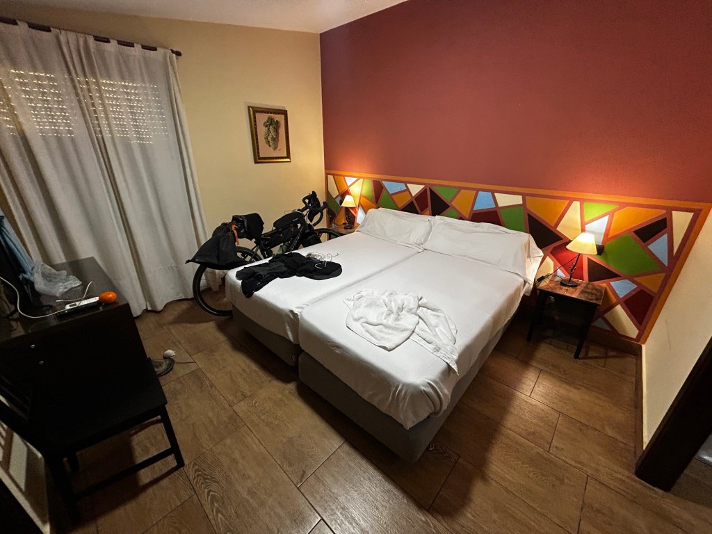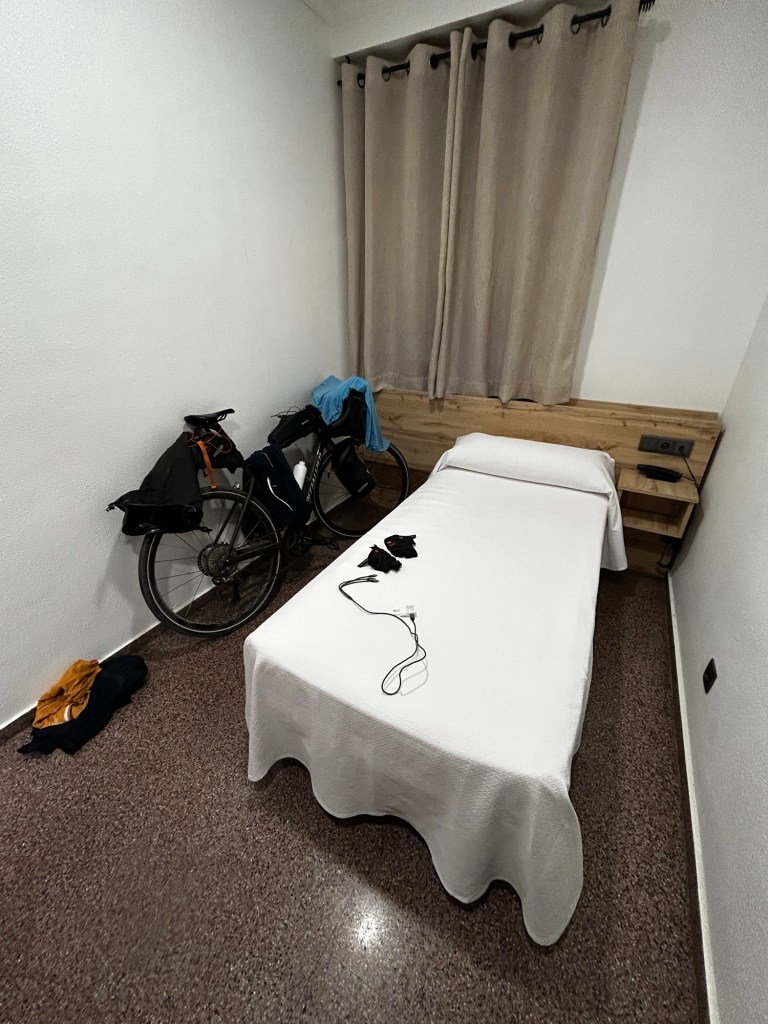 Heute habe ich mal wieder auf dem Rad alles ausprobiert was man nach meiner Meinung beherrschen sollte um sein Rad im Alltag im Griff zu haben. Dazu gehören : Freihändig fahren können, (also mit dem Po das Gleichgewicht halten), eine richtige Vollbremsung mit beiden Bremsen machen können, langer Schulterblick zu beiden Seiten, angstfrei und sicher über Hindernisse rauschen können. 8:30 Uhr . Es geht los. Ich liebe es Wenn es die einzige Option ist. Keine Brücke im Umkreis von 40 km . Schuhe aus und ab. Die Wassertiefe war in der Mitte nur bis unterhalb des Beckens. Ging also gut ! 🥳Alles zusammen für 8.70€ Der offizielle Euro Velo 8 .😱. Da muss ich jetzt drauf für 12 km . Es gibt tatsächlich keine Alternative dazu. Da hinten ist Gibraltar. Und ich dachte noch, ist bestimmt nicht tief…, komplett bis zu den Knien ..Nach 100 km bin ich am Abend in der Hafenstadt Algecira angekommen. Für 40 € inklusive Lärm, Gestank und einer uralten Hundedecke zum zudecken, habe ich mir dieses Schmuckstück von Hotelzimmer geleistet.