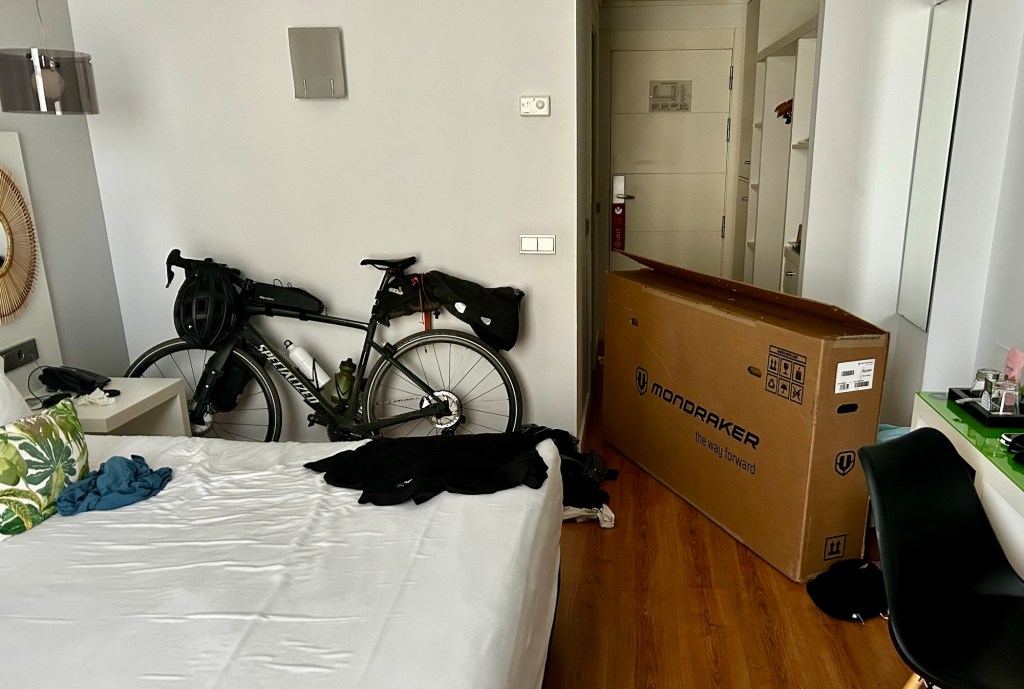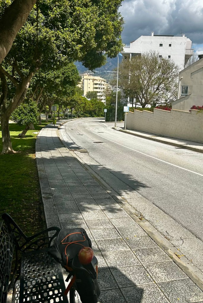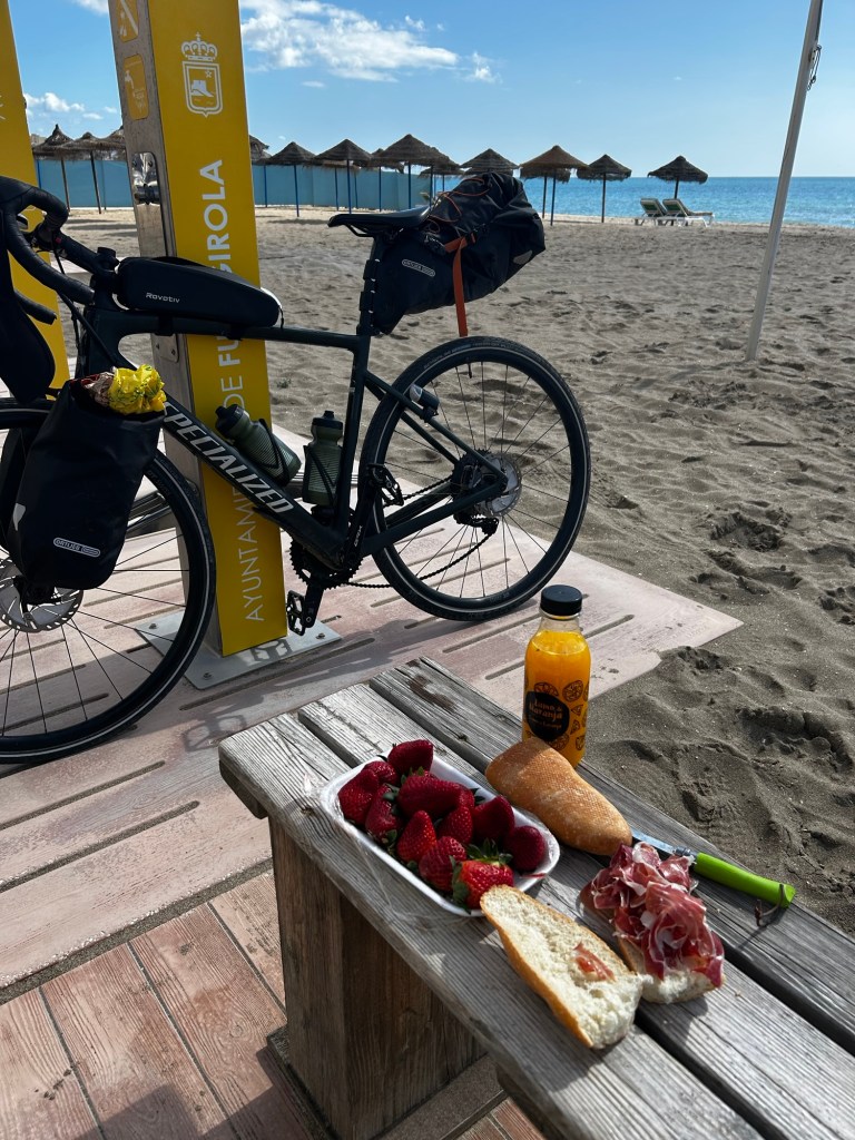 Das Rad gepackt und fertig zum Abflug nach Malaga. Was ich hier noch nicht wusste, dass ich diese Kiste nochmal komplett am Security Check auspacken durfte unter der Aufsicht von zwei Polizisten und drei übellaunigen Security Typen. Alles in allem war ich mein Pfefferspray los, was ich Dank von Andreas immer auf eine Radtour dabei habe. ( zum Hunde abwehren, wenn sie mir in die Wade beißen wollen … war schon mehrmals knapp) Selbstverständlich bin ich im gleichen Hotel unterkommen, indem ich letztes Jahr zuletzt geschlafen habe. Der Radaufbau ging fix, nach einer halben Stunde waren Pedalen, Sattel, Lenker und Vorbau wieder an der richtigen Position.Schinken, Paella, Eis und reges Treiben. Malaga ist schon eine tolle Stadt. Apropos Eis. In guter alter Tradition, gibt es wieder die aktuelle Eispreise zum Kopfschütteln. Im nächsten Leben mache ich eine Eisbude auf. Jede Ecke der Altstadt von Malaga ist interessant. 🧐 Gegen 9 Uhr ging’s endlich los. Heute soll es nur nach Marbella gehen. Ca. 70 km . Ich möchte erstmal wieder reinkommen. Bin ja ein ganzen Jahr nicht gefahren. 😳😱Raus aus der Stadt . Bordsteingala die Erste. Schönes Gefühl mit dem Rad und wenig Gepäck am Meer zu sein. Apropos Gefühl. Wenn man einen Berg hochfährt und oben merkt, shit Verfahren . Wieder runter. 🤠Verrückte Sachen waren heute wieder dabei. Von der unfreiwilligen Kneippkur bis komplett verbaute Straßen. 20 Uhr . Nach 85 km und einigen Höhenmetern bin am Ziel in Marbella angekommen. Ich habe mir ein billige Pension (50€ inklusive Frühstück) gesucht und morgen geht’s weiter. Langsam komme ich rein ins Fahrrad Game .