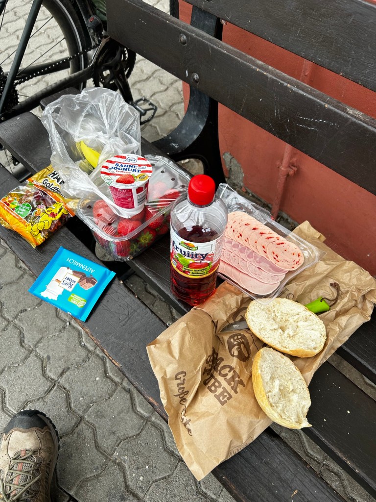 Frühstück wie schön kann Frühstück sein. Ich sage es euch! Man glaubt es nicht, aber ich habe tatsächlich Sonnenbrand im Gesicht. Auf der Suche nach Sonnencreme, hat mir die nette Verkäuferin noch ein kleines Geschenk für die Reise mitgegeben. Das ist schon das dritte Mal, dass mir die netten Tschechen was schenken. Erst die kleine Fährüberfahrt, dann der kalte Campingplatz und jetzt ein Aqua Minerale zum sprühen. Bissel wie Thüringen Wald, sagt mein Freund Ole 😃Diese kleinen Pausen sind wichtig und gut 👍 Bordsteingala an der Moldau Immer schön langsam. Ca. 20 km vor Budweis, mein heutiges Ziel Budweis nach nur 61 km mein Tagesziel erreicht. Glück im Unglück, ich bin nicht gestürzt! Auf einer holprigen Straße sprang meine Kette aus dem Ritzel und zog den Schalthebel in die Speichen. Einmal Hinterrad im Eimer. Keine Chance es selbst zu reparieren. Zwei nette Tschechen haben mir geholfen und mich zu einer kleinen Service Werkstatt gefahren.