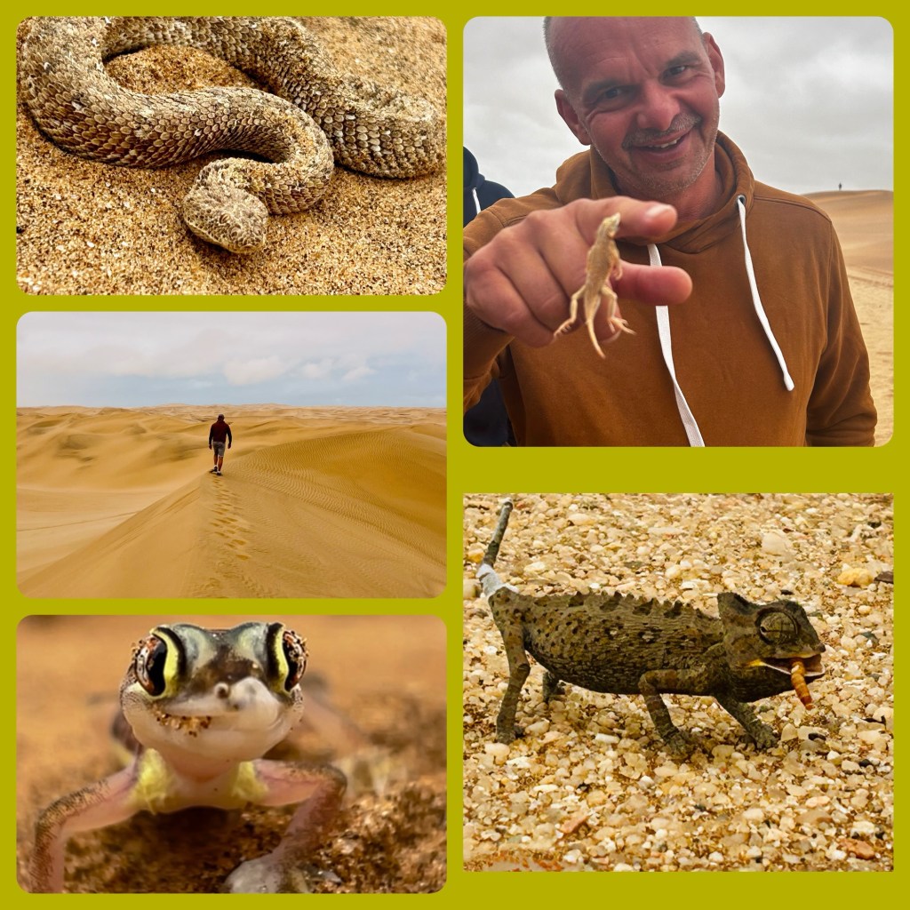 Die erste Nacht war kalt und windig . 5 Grad 🥶.Der kleine Buddy war ein kleiner Hund, der uns auf Schritt und Tritt begleitete.Früh am Morgen ging es Richtung Fish River Canyon. Der zweitgrößte Canyon der Welt.Niemand hier. Keine Mensch, kein Auto. Die ersten 800 Km Autofahrt haben wir schon hinter uns. Fish River Canyon. Morgen geht’s weiter Richtung MeerGute Planung ist fast alles 29.10.24 Nachdem wir uns freiwillig 6 Uhr auf den Weg gemacht haben, sind wir schon 11 Uhr in der Geisterstadt Kolmanskuppe angekommen. Hier wurde im Rausch von Diamanten eine kleine deutsche Stadt aus dem Boden gestampft. Mit allen Drum und Dran. Bäckerei , Schule , Boutique , Kegelbahn und und und. In der Blütezeit so um 1910 lebten hier 1400 Menschen.Die Sandstürme und deren Verwehungen sind so heftig, dass die Fahrbahn mit schweren Gerät permanent freigeräumt wird.Kurze Pause in einem verlassenen Bahnhof (es sind 30 Grad)Unser Nachtlager heute. Nach nun mehr 1300 km sind wir in Helmeringshausen angekommen. Morgen geht’s in die Namib Wüste.Mittwoch 30.10.24. Heute ist ein Reisetag. Wir fahren nach sossusvlei in die Namib Wüste, alles staubig, heiß (40 Grad) und wunderschön 🤩. Die Landschaft ist unglaublich!Direkt vor unserer kleinen Wüstenlodge sind einige Oryxantilopen (die Strauße sind Fake)Die Abendstimmung in Sossusvlei ist atemberaubend schön Und nicht nur die Abendstimmung 🤠😳Das Deadvlei in der Namib Wüste. Übrigens ein WelterbeUngefähr beim roten Punkt sind wir. Und morgen geht’s links hoch nach Walvis Bay und Swakopmund.Der Flamingo Bay liegt direkt an der Straße. Auf der Suche nach der Robbenkolonie sind wir im Sand stecken geblieben. Wir mussten 15 km durch Tiefsand fahren. Dafür haben wir ca. 30 Liter Diesel verfahren. Weil der Sand so tief war. Tschüssi Umwelt . 😳Das hieß, Luft aus allen Reifen rauslassen, freischaufeln und kräftig anschieben. Da hier keine externe Hilfe zu erwarten wäre ( auch kein Empfang) ging uns schon eine bissel der Stift. Aber alles gut gegangen. Nach ca. 10 min war der Spuk vorbei und wir konnten langsam weiterfahren. Das Getriebeöl war allerdings völlig überhitzt.Freitag 1.11. 24 . Heute bleibt unser Auto in Smakopmund stehen und wir machen eine kleine geführte Wüstentour. Die Bilder sind tatsächlich selbst geschossen. Echt spannend und verblüffend, so nah an die kleinen Viecher ranzukommen 8.11.24 Heute sind wir von Nambia, über Botswana nach Zimbabwe gereist. Nachmittags haben wir noch einen kurzen Ausflug nach Sambia gemacht. 1 Tag und 4 afrikanische Länder also . Dazu mussten wir u.a. 220 Dollar 💵 an Gebühren zahlen, 7 Coca Colas wurden verteilt und drei Zollbeamte etwas wohlwollender gestimmt 🙄💵💰 . Insgesamt haben wir 2 h für Grenzübertritte gebraucht. Allein nach Zimbabwe waren es 45 min. Da gibt einen Job, der Speditionshelfer, der hilft Touristen beim ausfüllen von Formularen. Ein Grenzformularausfüllhelfer sozusagen. Aber zumindest sind wir nicht wieder illegal in ein Land eingereist 😅 Zum Bild : wir durften kein Feuerholz mit nach Botswana nehmen. Also ab zum nächsten Holzhändler an der Straße. Als wir anhielten, kamen schon die Kinder angerannt. Wir haben dann Holz , Süßigkeiten und eine Spende da gelassen. Das plötzliche Geschenk war eine gute Überraschung für die Familie. Sie leben am Rand der Straße in einer Buschhütte.Eine schöne kleine Stadt am Meer. Besonders die Restaurants direkt am Wasser sind ein Highlight. Lecker Garnelen und Fisch. 🐠 Morgen geht unsere wilde OKF weiter, Richtung Etosha.02.11.24 heute ging es zum Ethosha Nationalpark, wieder einmal quer durchs Land. Die Straßen sind extrem staubig und die Landschaft abwechslungsreich und wunderschön.Diese Dornen haben es in sich. Da möchte man nicht drauf treten. Es sind übrigens 38 Grad. Nach 650 km erreichen wir Etosha. Ein riesiger Park, noch um einiges größer als Sachsen. Unglaublich Vom Breitmaulnashorn gibt es weltweit nur ca.1000 Exemplare Der Gepard ist der Schnellste an Land. Über 100 Sachen bekommt er in nur wenigen Sekunden hin.Schöne Stimmung Mangusten sind soziale Tiere. Sie fressen auch gern mal ein Schlange und sind gegen das Gift immun. Und so sieht die ungeschminkte Wahrheit aus. Nach bisher 3000 km ist der Fußraum eine Zumutung. 😅