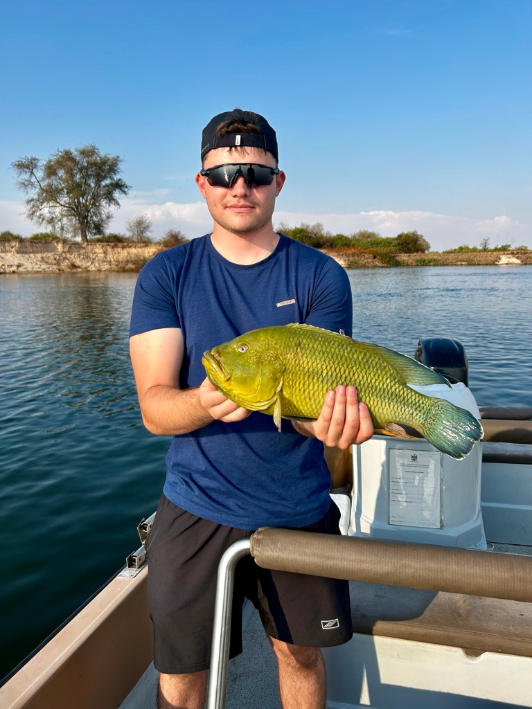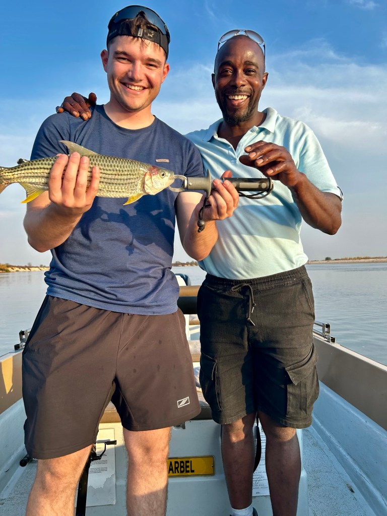 Wir sind heute illegal nach Angola eingereist und wir haben der hiesigen Polizeistation einen neuen Fußball übergeben.Das ist eine amtliche Polizeistation von Angola. Es gibt Männer- und Frauenwaschabschnitte und besondere Stellen zum Wasser holen. Und für euch zu Hause heute die Aufgabe; beim Wasserhahn aufdrehen einmal mehr dankbar dafür sein!07.11.24 Heute sind wir durch den Caprivi Zipfel gefahren. Am Zambesi machten wir Halt für einen kleinen Fishing Trip.Wir haben auch einige Nilpferde gesehen. Die Bilder von den Hippos sind aber nicht so gut geworden. Unser Guide betonte, dass die Nilpferde die gefährlichsten Tiere überhaupt sind, viel gefährlicher als Löwen oder Leoparden.