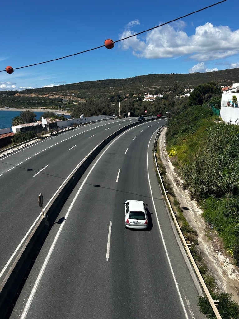 Hinter mir ist Afrika. Die Meeresenge von Gibraltar ist nur 14 km breit. Tarifa, der westlichste Zipfel von Europa Das Märchen von Rapunzel könnte hier gespielt haben. Hier ist Kite Surfing das DingDie Sonne ballert und ich habe mir den Nacken verbrannt . Aber eine schöne Aussicht ist es allemal Nach nur 70 km aber dafür einigen Höhenmetern, gönne ich mir ein gutes Hotel mit warmen Wasser und einer Bettdecke. 😊